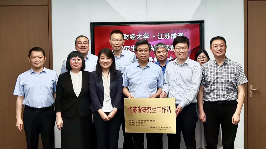 的办学历史、师资队伍、专业建设、学科建设和研究生培养情况。江苏省设备成套股份有限公司董事长致欢迎词并介绍了公司的发展概况。杜修立副院长与黄旭董事长共同为江苏成套“江苏省研究生工作站”揭牌,朱红根院长为专硕行业导师颁发聘书。校企双方对如何充分利用好省级研究生工作站这一平台开展有关工作进行了深入交流。