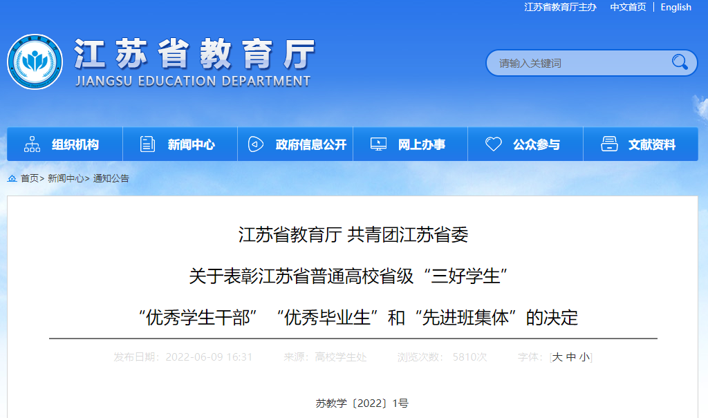 经济学2019级研被评为江苏省普通高校省级“先进班集体”,2020级应用统计专业黄欣媛被评为江苏省普通高校省级“优秀学生干部”,2019级人口、资源与环境经济学专业王庆玲被评为江苏省普通高校省级“优秀毕业生”。