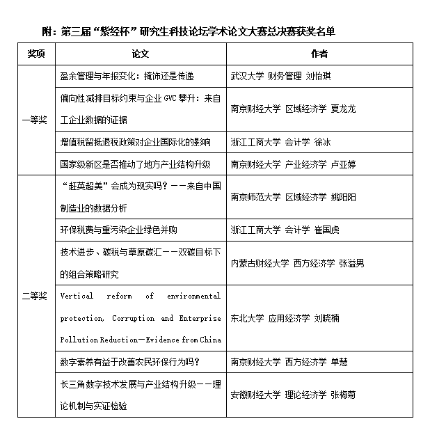 已经连续举办三届“紫经杯”研究生科技论坛学术论文大赛,该项赛事已经成为研究生的品牌学术活动,产生了较大的社会影响,逐渐成为全国财经类专业研究生学术交流和科研创新的重要平台。