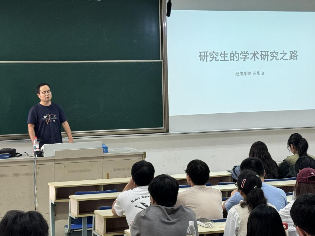 本次讲座以“研究生的学术研究之路” 为主题,紧密围绕研究生阶段学术任务的核心框架展开,为在场研究生带来了一场兼具理论深度与实践指导意义的学术分享。讲座伊始,苏华山副教授便将研究生学术任务清晰划分为三大关键板块。其一,是作为学术研究前置基础的 “课程与工具学习”。他强调,扎实的理论功底是开展科研工作的根基,而熟练掌握各类研究工具则是提升科研效率、保障研究质量的关键,研究生需在这一阶段投入足够精力,为后续研究筑牢基础。其二,是作为研究生学术能力集中体现的 “学位论文撰写”。苏华山副教授结合自身经验,指出学位论文不仅是对研究生学术成果的总结,更是对其学术思维、研究方法运用能力的全面检验,研究生需高度重视,严格按照规范开展撰写工作。其三,是作为学术能力拓展重要途径的 “公开发表学术论文”。他鼓励有条件的研究生积极参与学术论文发表,通过与学界同行的交流互动,不断提升自身学术影响力,为未来学术发展积累优势。