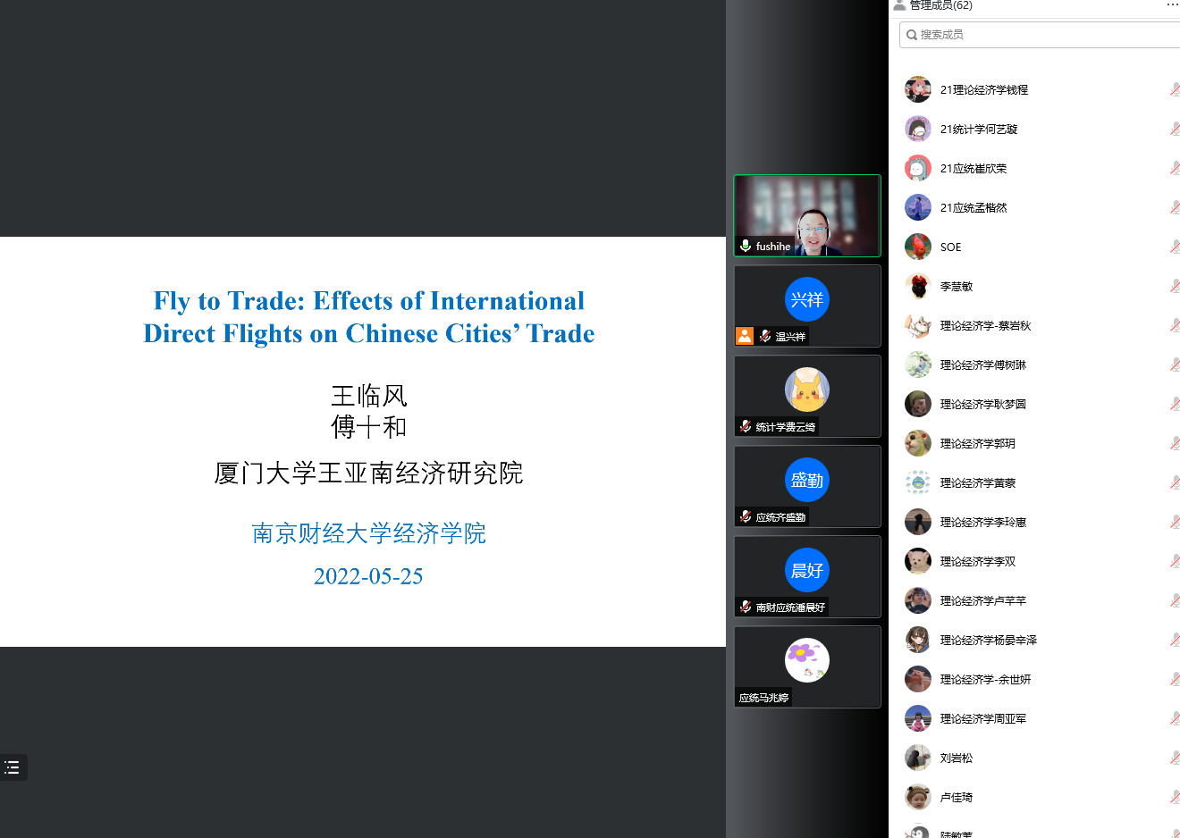 师生做了题为“Fly to Trade: Effects of International Direct Flights on Chinese Cities’ Trade”的学术报告。报告由明星色情