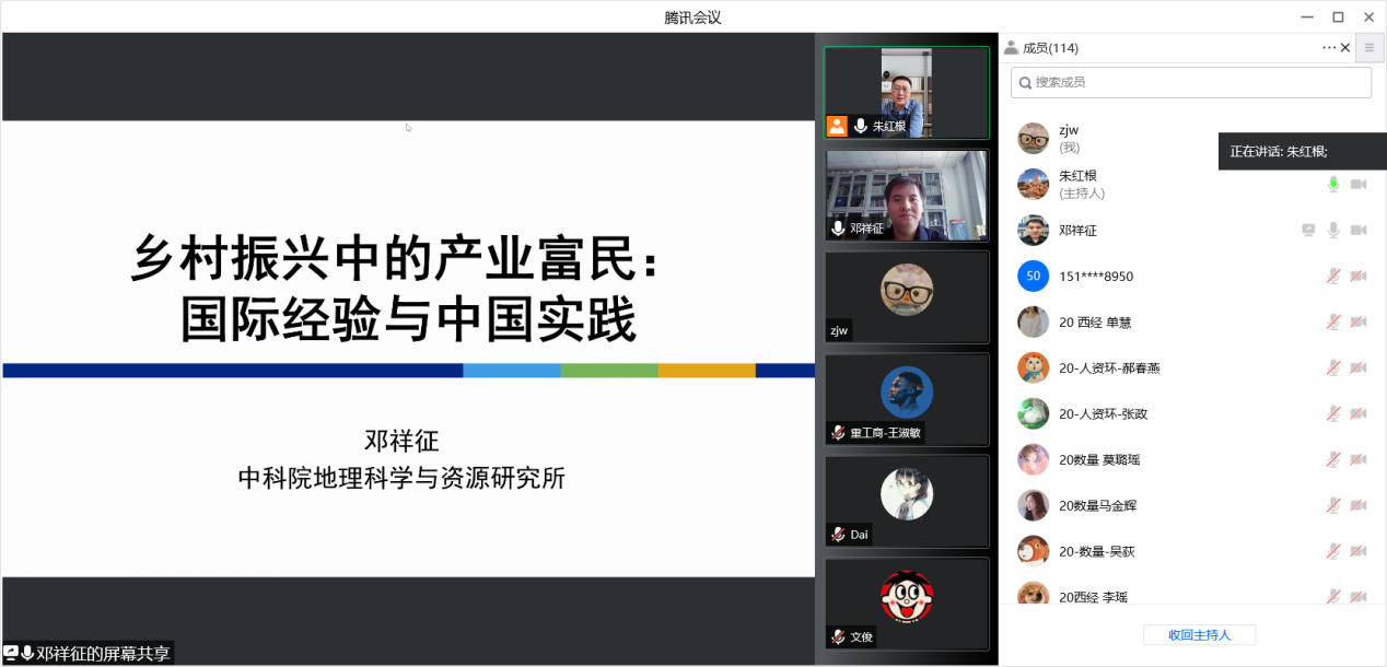 师生作题为《乡村振兴中的产业富民:国际经验与中国实践》的线上学术报告,报告由院长朱红根教授主持,来自明星色情