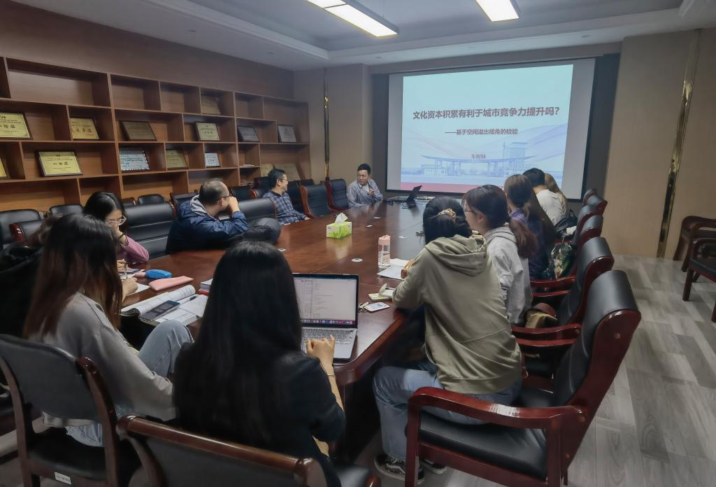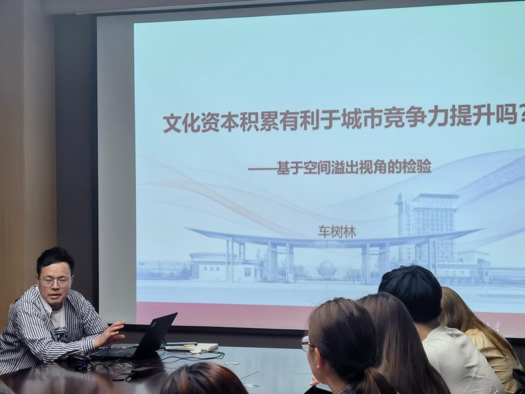 在德经楼329会议室成功举办了本学期第三期双周学术论坛。本期论坛由经济系车树林博士带来题为《文化资本积累有利于城市竞争力提升吗?——基于空间溢出视角的检验》的学术讲座。学院部分老师和研究生参与讲座。